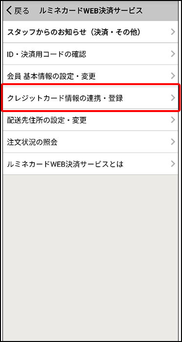 「クレジットカード情報の連携・登録」をタップし、照会画面へ遷移。