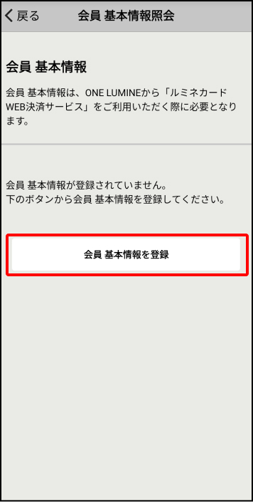 個人情報の取り扱いについて同意いただくと、ページが切り替わります。「会員 基本情報を登録」をタップし、会員 基本情報を登録するためのフォーム画面に遷移。