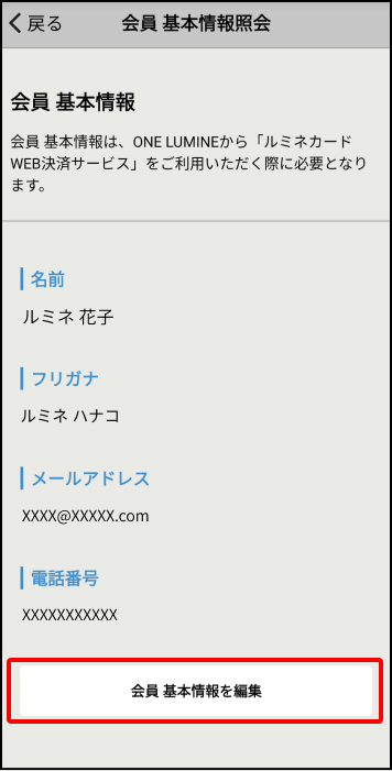 会員基本情報の設定・変更をタップし照会画面に遷移。
