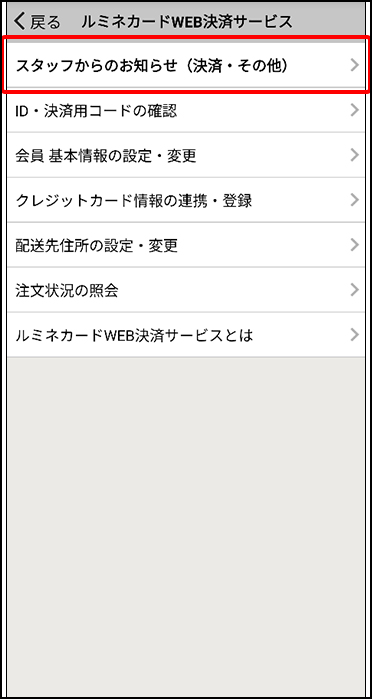 「スタッフからのお知らせ(決済・その他)」をタップし、該当のお知らせをご確認ください。